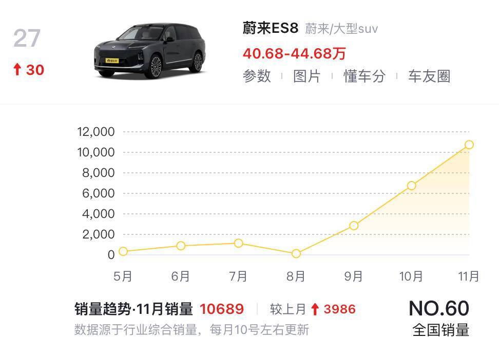 SUV榜单呈现出截然不同的消费图景。方程豹钛7以8.8分登顶,上市80天销量突破5万台的成绩印证了"20万价位水桶之王"的称号。这款硬派外观与全能配置兼具的车型,精准击中了家庭用户的需求痛点。蔚来ES8同样凭借降价策略实现逆袭,70天交付2万台的成绩刷新40万元以上纯电车型纪录。吉利星越L则以23.7万台的年销量守住燃油车尊严,8.6分的评价中,"油车MVP"的称号饱含用户对传统品质的信赖。