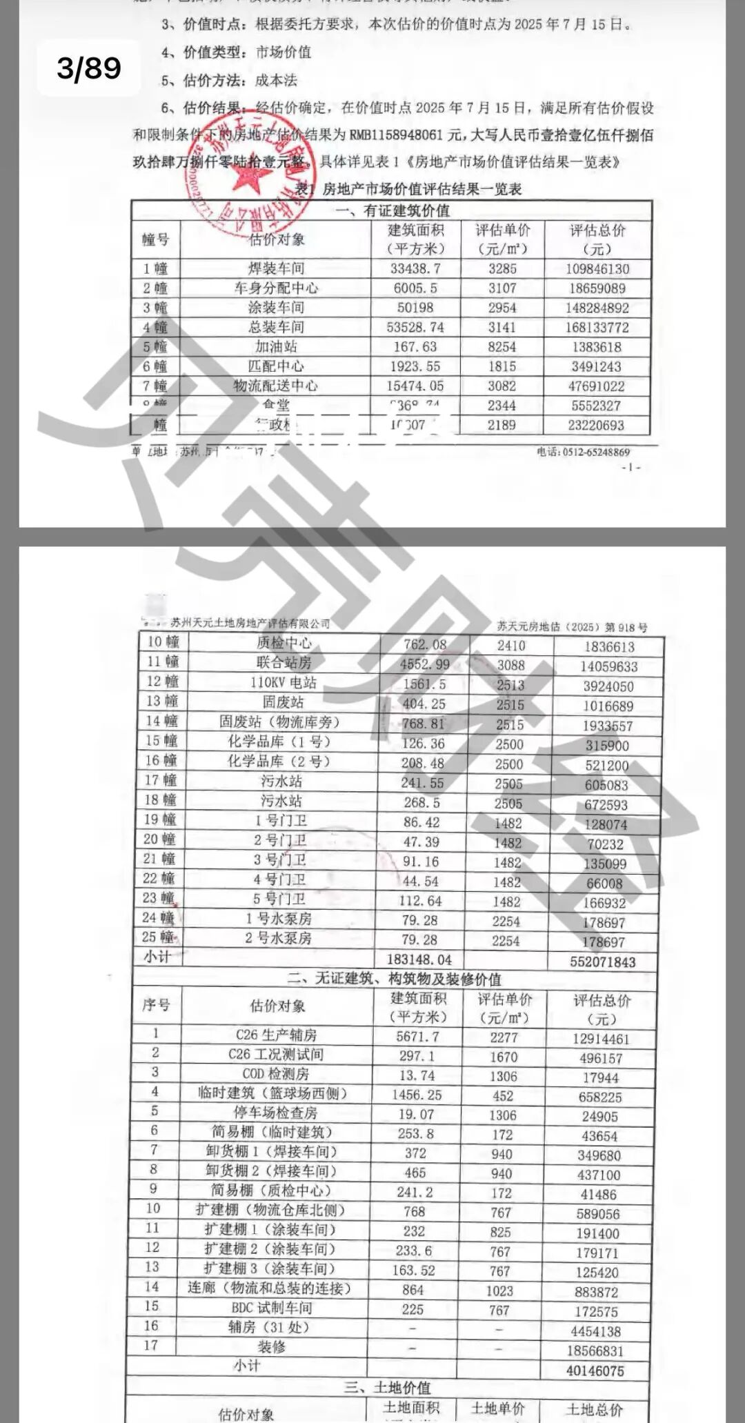 1月14日中午,中国宝能公众号发布了一段实名举报视频。宝能集团董事长、观致汽车实际控制人姚振华坐在镜头前,向最高人民法院和江苏省高级人民法院公开举报。新京报贝壳财经记者独家从一份房地产估价报告中看到,观致汽车工厂的焊装车间评估单价为3285元/平方米,车身分配中心的评估单价为3107元/平方米,总装车间的评估单价为3141元/平方米,食堂的评估单价为2344元/平方米,行政楼的评估单价为2189元/平方米。
